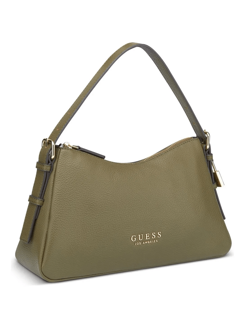 La Guess Alisha Shoulder Bag es un bolso de hombro que destaca por su estética femenina y sofisticada, ideal para quienes buscan un accesorio con estructura pero con detalles decorativos que le dan un aire de lujo