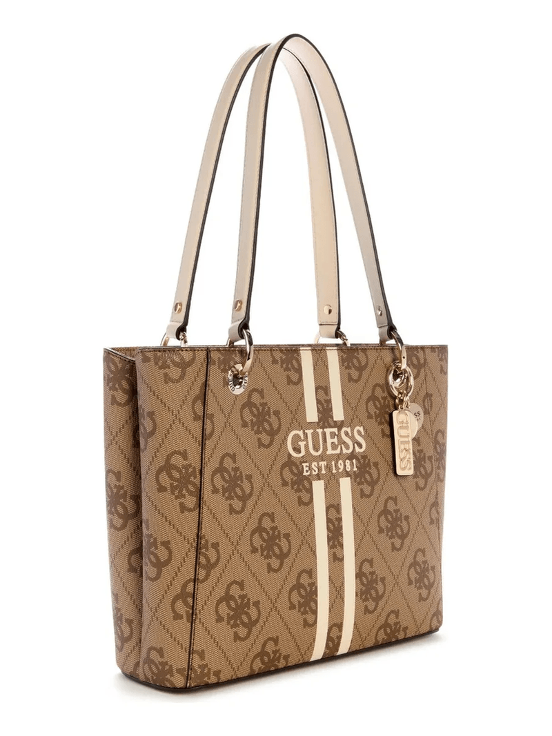 La Guess Noelle II Small Tote es una de las bolsas más buscadas por su tamaño equilibrado: no es tan grande como una shopper de viaje, pero tiene mucho más espacio que una bandolera común. Es ideal como bolso de diario para la oficina o salidas donde necesitas llevar algo más que lo básico