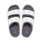 La nueva sandalia Classic Cozzzy presenta un forro suave y peludo, suelas elevadas con estilo y dos correas superiores que ofrecen mayor seguridad para el pie. Siete agujeros en cada sandalia permiten la máxima personalización con dijes Jibbitz™, mientras que la construcción de espuma Croslite™ las mantiene livianas y fáciles de usar.