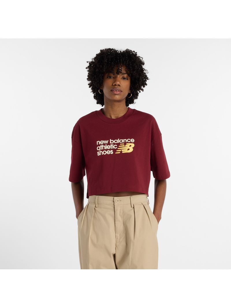 Remera New Balance Mujer Premium Logo Cropped Tshirt Bordó