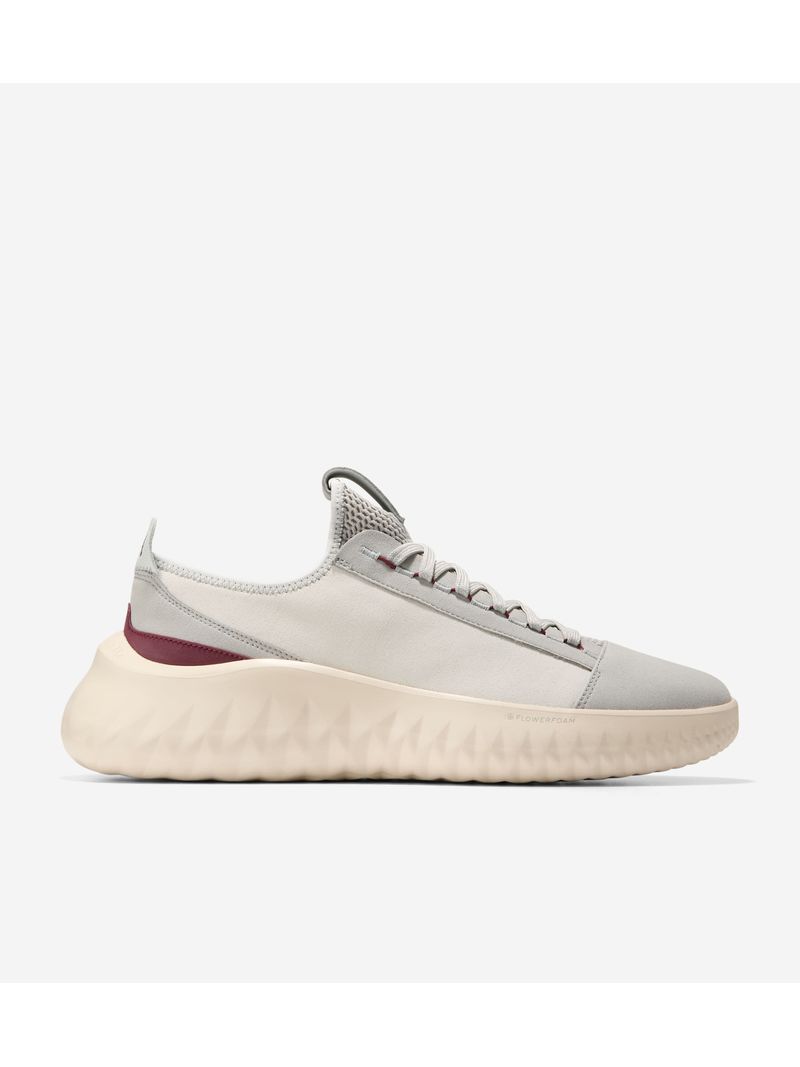 Una zapatilla deportiva con una historia de sostenibilidad y un estilo inspirado en la naturaleza: la zapatilla Generation ZERØGRAND II, con un sistema de cordones que recuerda a las correas de las mochilas, una parte superior de tejido transpirable pero resistente al agua, similar al que se utiliza en el equipamiento de senderismo, y una suela ligera fabricada con nuestro propio material sostenible FlowerFoam™ EVA.