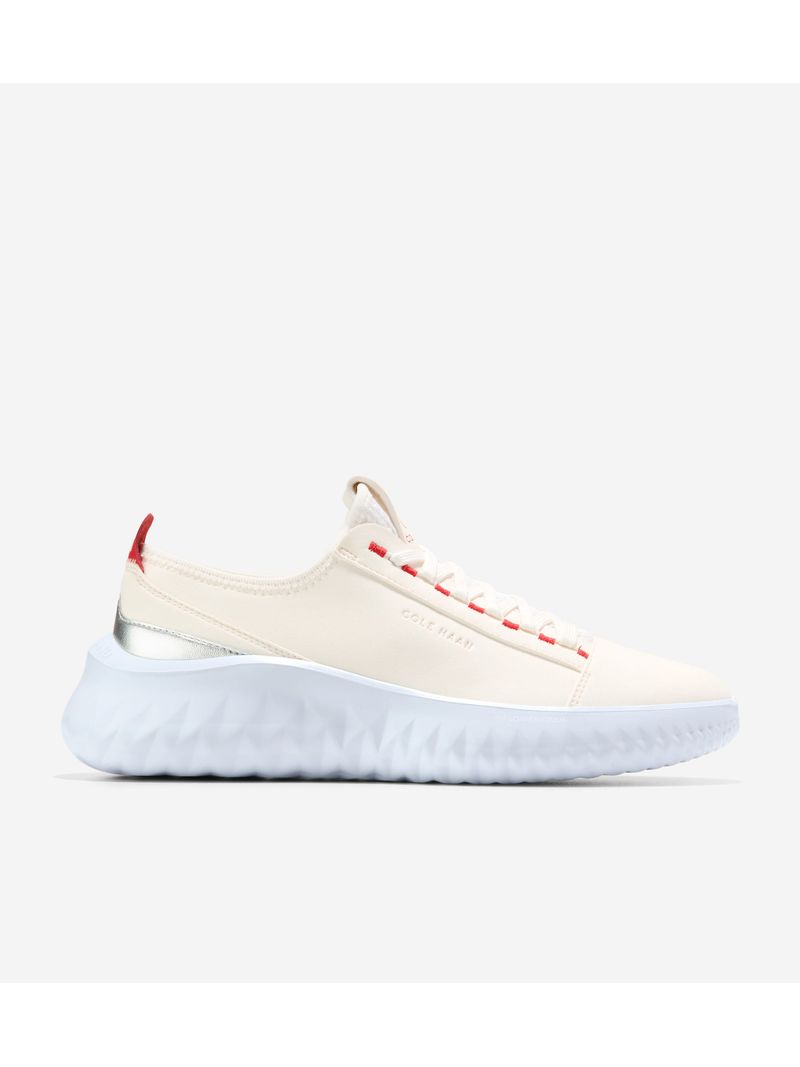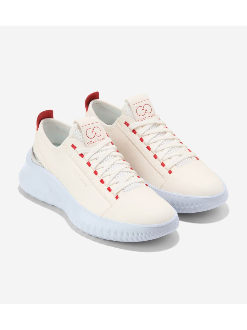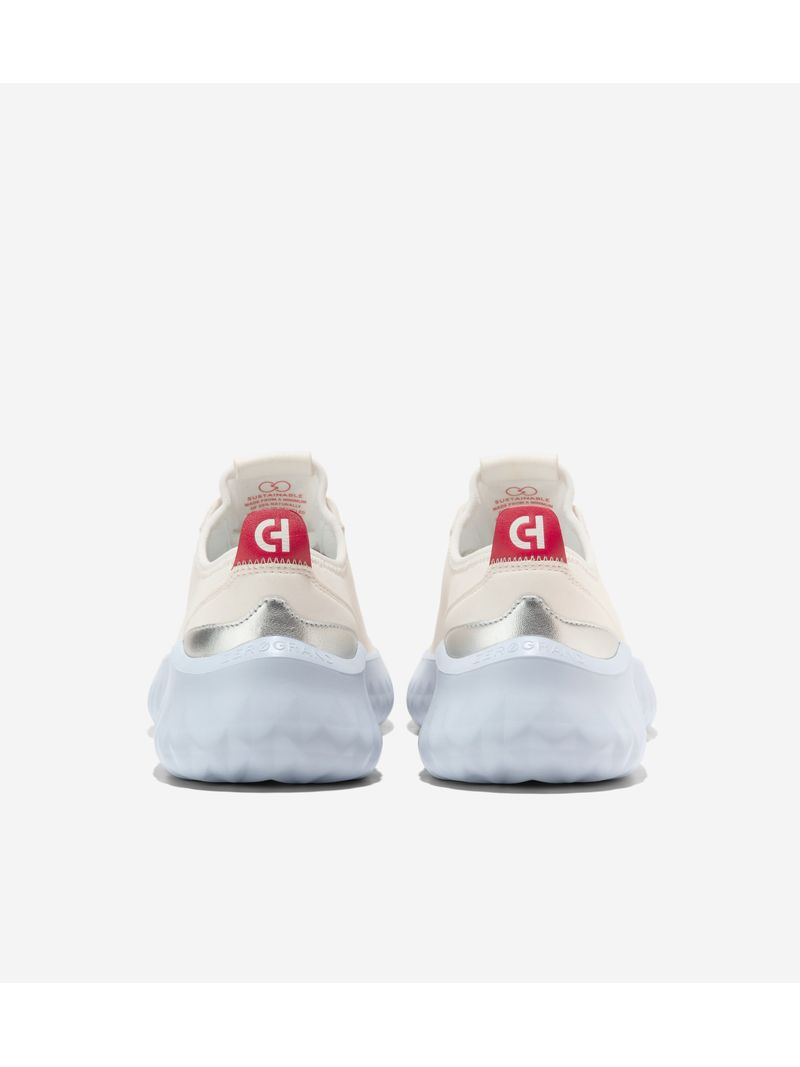 Una zapatilla deportiva con una historia de sostenibilidad y un estilo inspirado en la naturaleza: la zapatilla Generation ZERØGRAND II, con un sistema de cordones que recuerda a las correas de las mochilas, una parte superior de tejido transpirable pero resistente al agua, similar al que se utiliza en el equipamiento de senderismo, y una suela ligera fabricada con nuestro propio material sostenible FlowerFoam™ EVA.